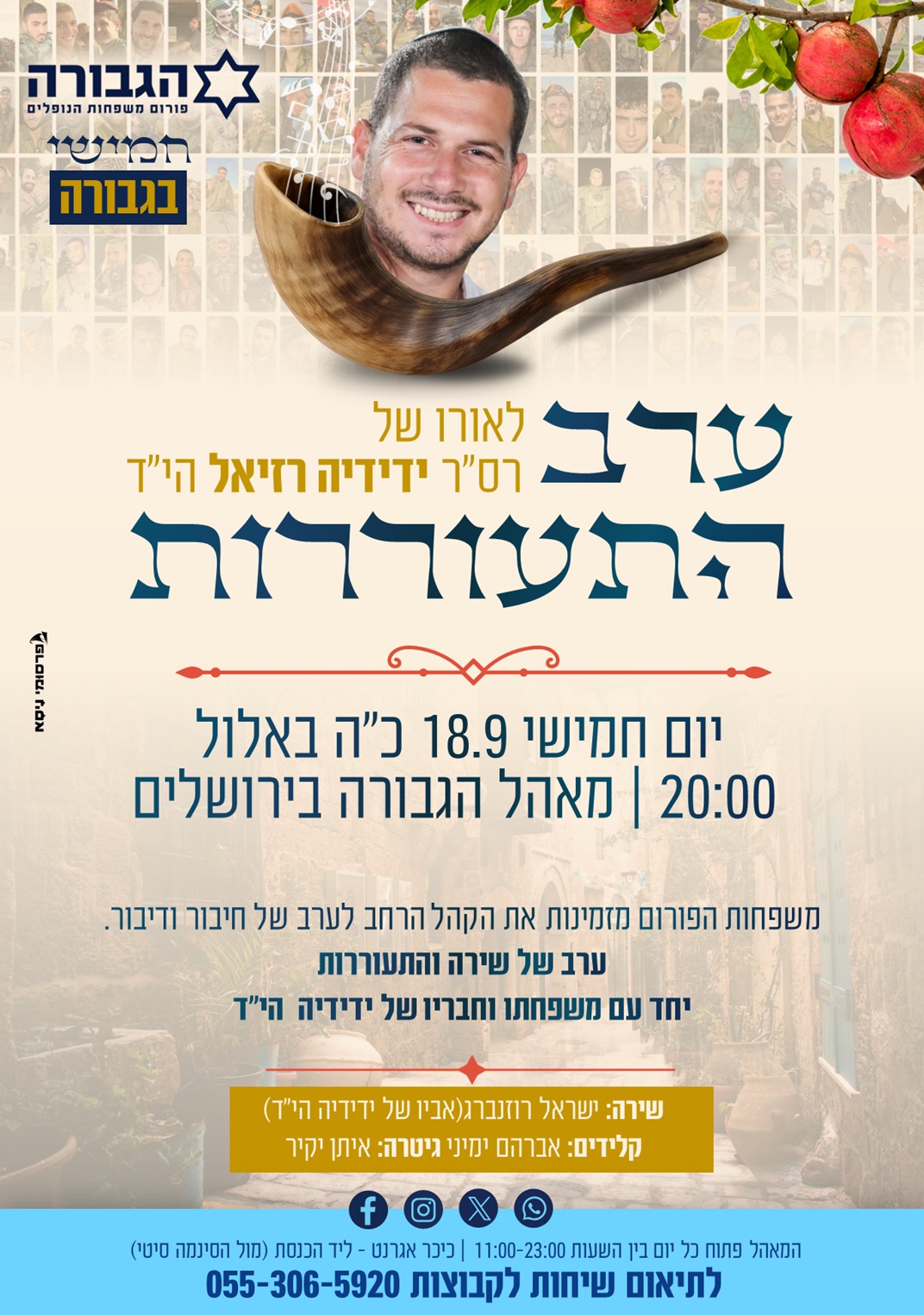 כולנו מחזקים את רוח הלחימה, מחזקים את צדקת הדרך, מחזקים את החתירה לניצחון מלא ללא פשרות בשביל הדורות הבאים ובשביל הבנים שלנו שנפלו על קידום ה'